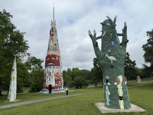 Baxter Springs, no longer as hell-raising as once was, past the R66 Retirement Home and Mickey Mantle's home base at Commerce. Past more gas stations and food stops, along the Ribbon Road 66 and then a totem pole park at Foyil. The giant Blue Whale at Catoosa is weird but fun, and an homage stop at the site of Les Paul's near fatal car accident. Lucky to keep his arm. Lincoln Motel tonight.