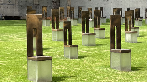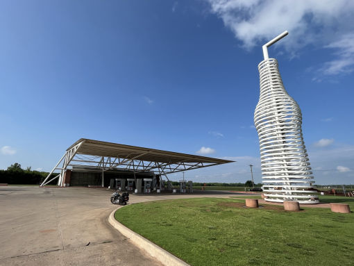 More historic petrol pumps, a round barn at Arcadia and the 50s-going on-2550s style Pops Soda Store on the way into Oklahoma City (mighty pretty) to see the Survivor Tree memorial. More museums and roadhouses, who was Lucille ? The Erick Curiosity Shop, utterly fantastic. The UDrop Inn at Shamrock and the Cactus Inn at McLean for the night. Not serving alcohol in the steakhouse, but the Barbed Wire Museum is outstanding.